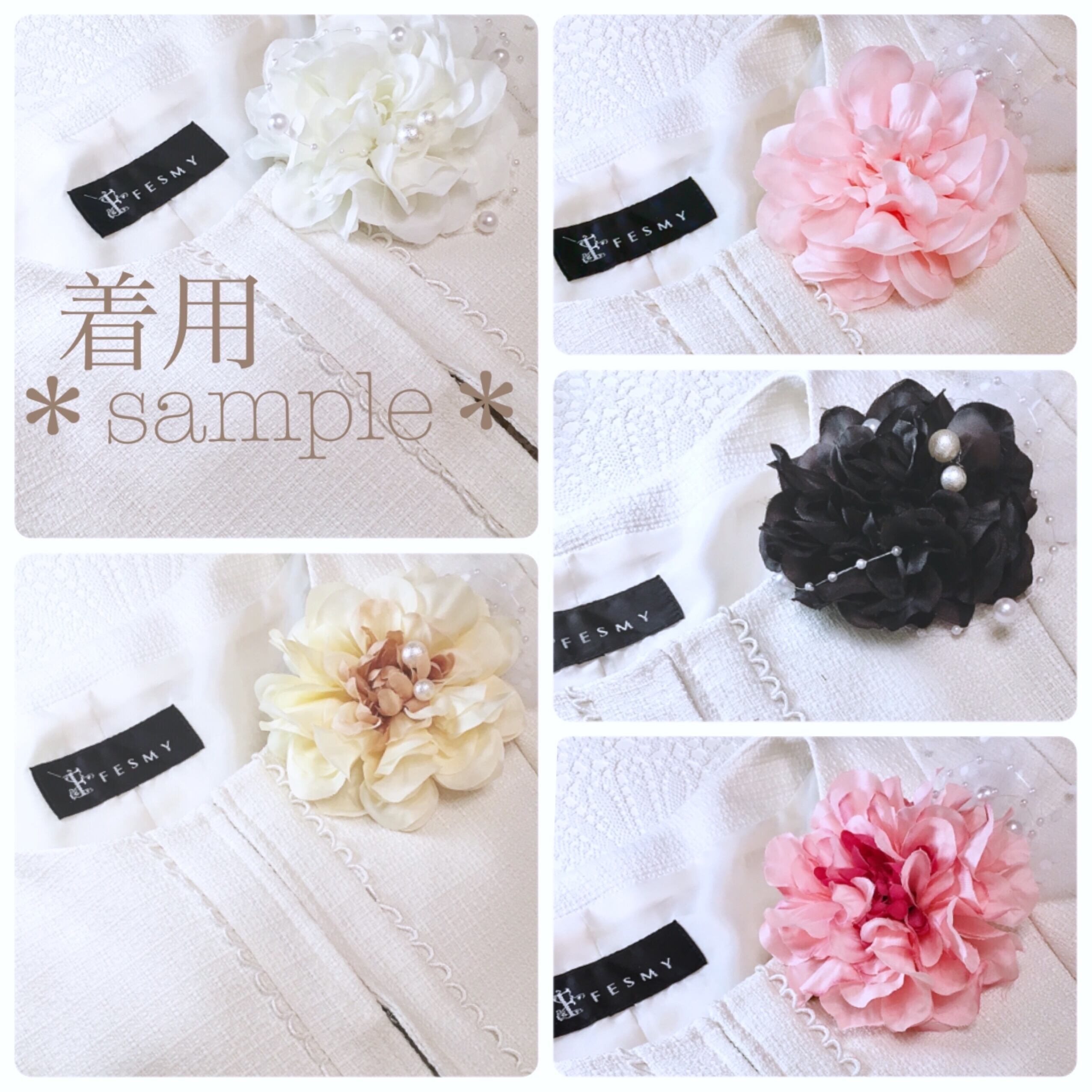 #フォーマル #式 #入学式 #入園式 #卒園式 #卒業式 #謝恩会 #結婚式 #送料無料 #コサージュ #ハンドメイド #リボン #ブローチ #花飾り #髪飾り #ピンク #ホワイト #黒 #ブラック #パープル #アートフラワー #白 #パール #ベージュ #ダリア #セレモニー #シンプル